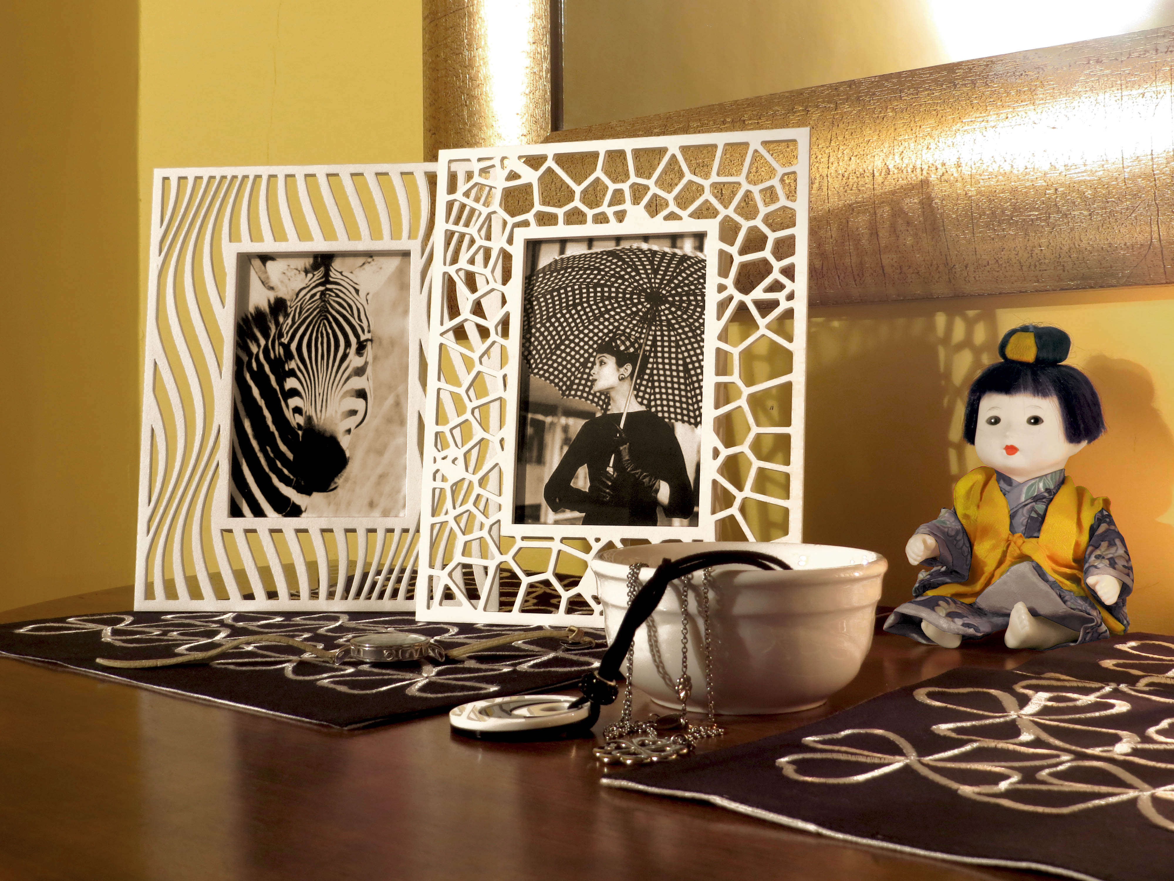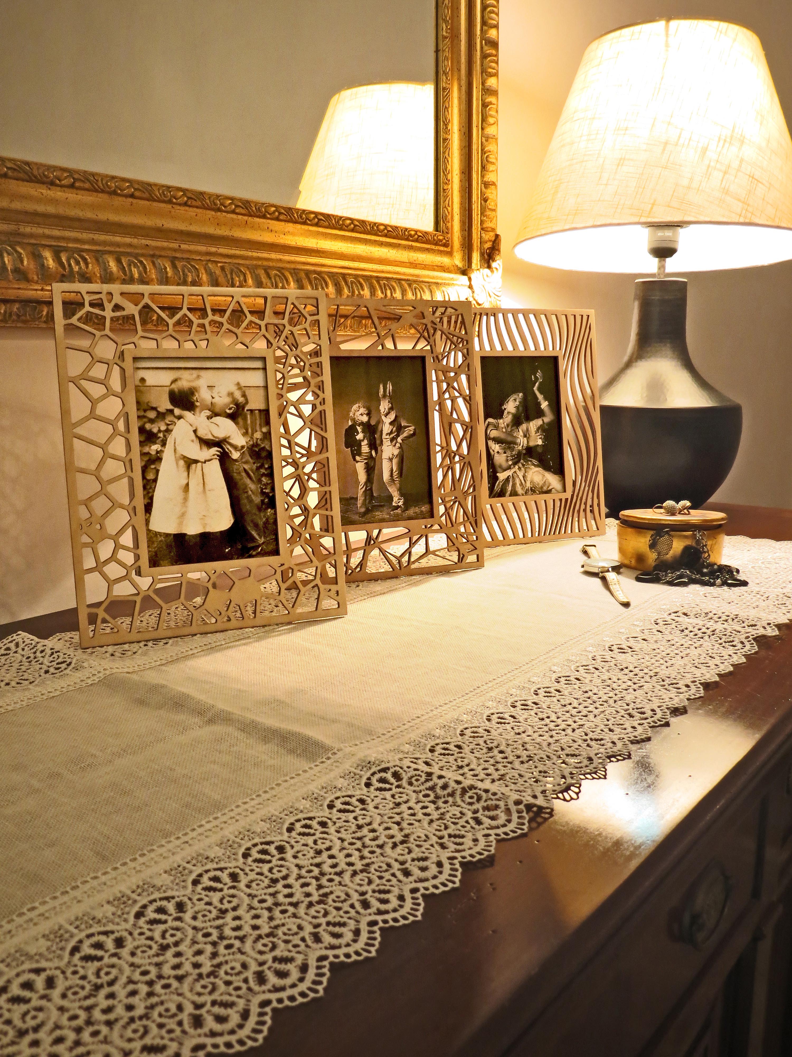 Frame “Pattern”, wood and methacrylate, various textures and finishes.
