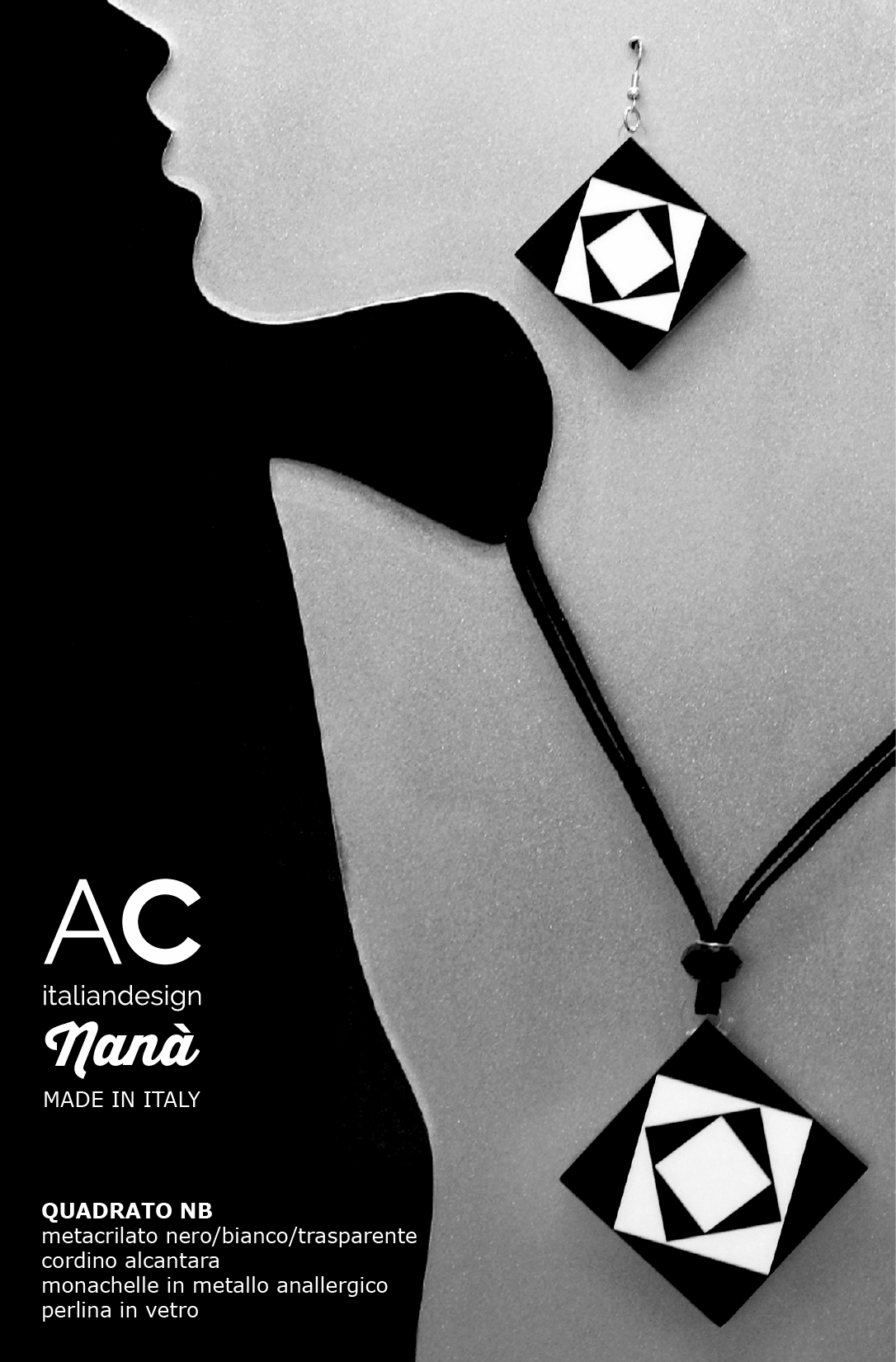 Necklace and Earrings Quadrato Black